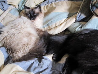 Sunday mornings are purrfect for a snooze with my best girl Ellie. She's still not too sure about me, so I have to move in nice and slow.